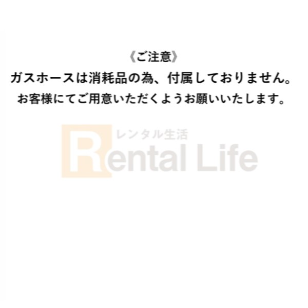 ※ガスホースは付属していませんので、お客様で都市ガス用(白色か薄いピンク色)のホースのご用意をお願いいたします。また、ガス栓のタイプによっては、ゴム管ソケットが必要となる場合があります。